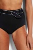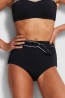 ביקיני תחתון גבוה מחטב בצבע שחור עם חגורה, מחמיא וסקסי, מעוטר בסיומת פס לבן !!!  מספק מראה סקסי ומפתה עם הרגשה של חיטוב, נוחות וכיסוי מלאי.