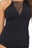בגד ים, גופיה טנקיני בגזרת קולר עם מחשוף V סקסי בצבע שחור. כוללת כתפיות דקות מעבר לכתף שנקשרות בגב לפי התאמה אישית.