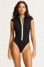 Beach  בגד ים שלם מבד ריב מחטב עם שרוולים וסגירת רוכסן SF60290-072-BLK-WH