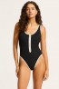 Beach  בגד ים שלם רטרו מחטב מפתח ירך גבוה  SF11170-072-BLK-WH
