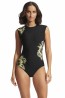 Summer Of Love בגד ים שלם עם שרוולון קצרצר, גב חשוף   SF10710-928-Black-Sz8