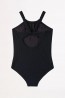 בגד ים שלם בסגנון ספורטיבי לנערות וילדות( עד גיל 16), בצבע שחור