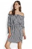 Midsummer שמלת פסים מיני אוורירית, כתפיים חשופות SF53334-DR-WHITE