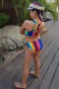 Rainbow ביקיני ספורטיבי פסים לילדות ולנערות