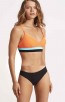חזיית ביקיני ברלט, מעטרת בסים בצבע  תכלת וכתום, כוללת כיס פנימי עם ריפוד פוש אפ קל (ניתן להוסיף עוד פוש אפ) ומסדרת את צורת החזה קאפ A-C. רצועות כתף מתכוונות, מרימות אותו כלפי מעלה למראה חזה מלא יותר.