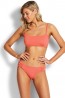 סט ביקיני חזית ברלט מחמיאה עם תחתון קלאסי,  בצבע ורוד קורל, מעוטר בחוט ברונזה מטאלי נוצץ  (הגדילו את התמונה), תגרום לך בקלות להרגיש נוצצת במרכז מסיבת בריכה או חוף.  טופ ביקיני עם תוספות רכות (נשלפות), מעצב את צורת החזה קאפ A-Cוכתפיות מתכוונותמרימות אותו כלפי מעלהטופ נסגר עם קליפ בגב (בדומה לחזייה רגילה). ביקיני תחתון, בגזרה קלאסיתמתאים לכל מי שרוצה ליהנות מבילוי בחוף הים עם תחתון נוח, שמכסה היטב, בלי חששות. תחתון ביקיני כולל כיווצים בצדדים - גימור מושלם לביקיני מדהים.